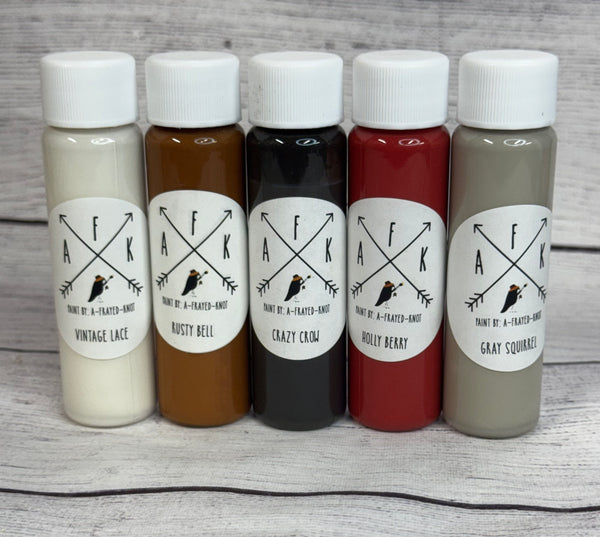 • Five 1 oz bottles of AFK Chalk Paint in coordinating holiday colors: