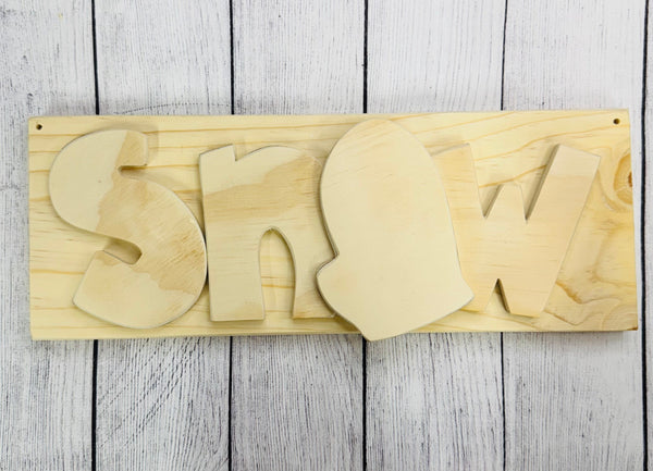 This adorable design spells out the word SNOW, but with a playful twist: the “O” is replaced by a mitten-shaped wood cutout for the cutest seasonal touch. Originally offered as a full kit, this project is now available as a wood pack only, making it more affordable while still giving you the same high-quality AFK wood pieces you know and love.