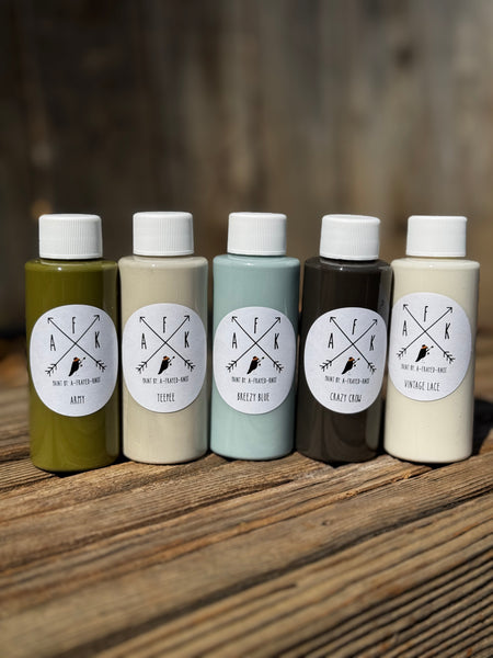 Inspired by soft, timeworn hues and the beauty of vintage charm, The Vintage Pebble Collection captures Stephanie’s cozy, creative style. Each color in this 5-piece AFK Chalk Paint set was hand-selected to complement one another and bring a peaceful, lived-in feel to your home.